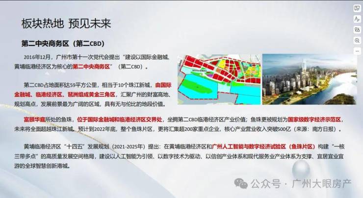 第二CBD占地面积达59平方公里,相当于10个珠江新城,由国际金融城、临港经济区、琶洲形成黄金三角区,是广州发展前景最为广阔的区域,