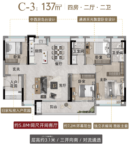 (3) 带装修交付(带全屋中央空调,电视背景墙),承袭板块最高装修标准;