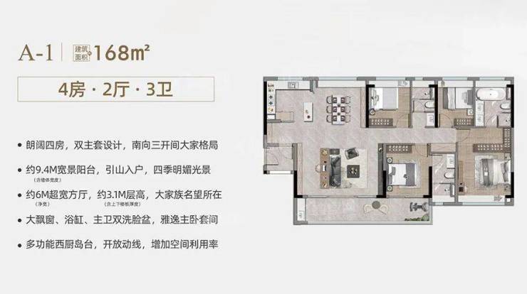 “语”系2.0升级| 打造主城昂贵的宁静!建面约97-168平方米南向巨幕山景四房;超大幕墙比例,堪比汇悦台的前沿“钻铂”外立面;区域稀缺168平四房户型,自住投资兼备;
