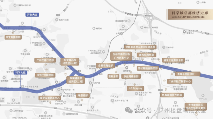 项目位于科学城和香雪两大总部产业经济带内;距离科学城总部经济开发区约1km;周边汇集总部经济、IAB、NEM三大千亿产业,吸引超170家世界500强(全市占比67%),近百家企业总部落地(全市占比40%),聚集约3400多家外商投资企业、约1000多家高新技术企业、超400家科研机构;