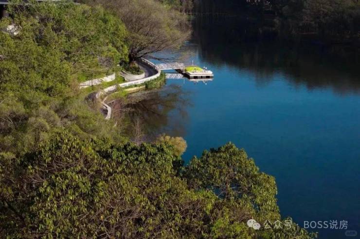精妙地借助地势筑建台地,一路往上延伸,每列别墅拥有合理高差实现南向望湖,景观更开阔。