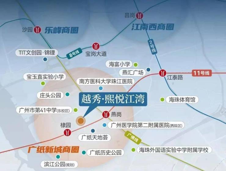项目100米不到就是开业多年的广纸天地荟,吃喝玩乐一条龙,海珠西这里发展了很多年,街边的小铺、几十年的老店都非常多,在吃的方面完全不用担心,而且广纸314地块还有1000平的商业用地,据悉可能会打造快时尚商业,如果觉得家门口的商业还不够,开个车转个弯就能到乐峰广场、江南西商圈。
