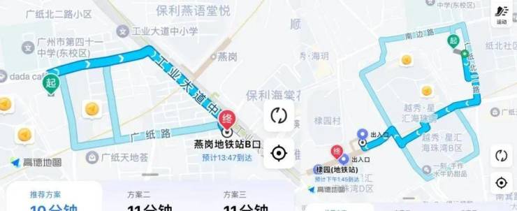 项目距离广佛线燕岗站直线约400米,步行大概需要600米左右,走去地铁站约10分钟左右,距离11号线棣园站直线约250米,步行需要600米左右,大概8分钟左右,算是个妥妥的双地铁盘,均可不换乘直达珠金琶。