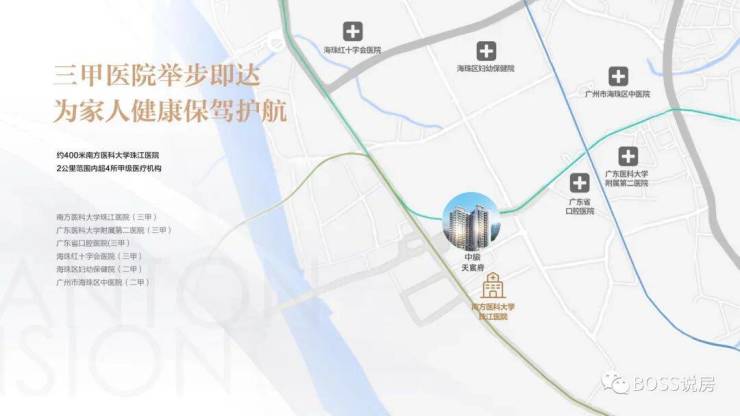 500米步行南方医科大学珠江医院,广州医科大学附属第二医院、广州市红十字会医院等多家三甲医院保驾护航。