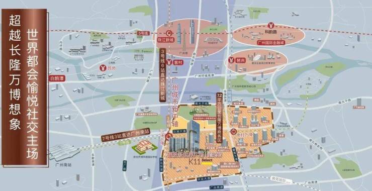 项目位于万博-长隆商圈三轨交汇枢纽之上,位于汉溪长隆地铁站上盖,对面就是长隆欢乐世界。