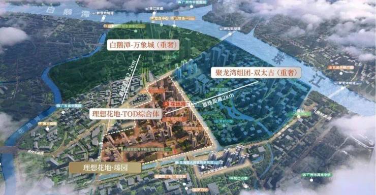 万科万汇天地·瑧园实际上是万科广信资产包的一部分。整个花地湾板块,总占地 1平方公里,1500亩。相当于至少150个足球场的那么大。这连片开发出来,比广钢新城的规模还要大。