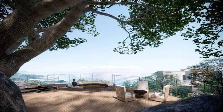 东西布局双全景眺望台,一处藏身森林,一处傍立古树,尽览无垠海景