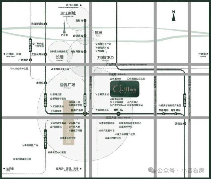 保利琅誉,位于“番禺广场+番禺客运站”双TOD上,与3号线东延段傍江站(在建中)直线距离约590米,一站即达番禺广场站:地铁3号线、18号线、22号线、3号线东延段(在建中) 、17号线(规划中),五轨交汇,一站畅行琶洲,两站通勤珠江新城。