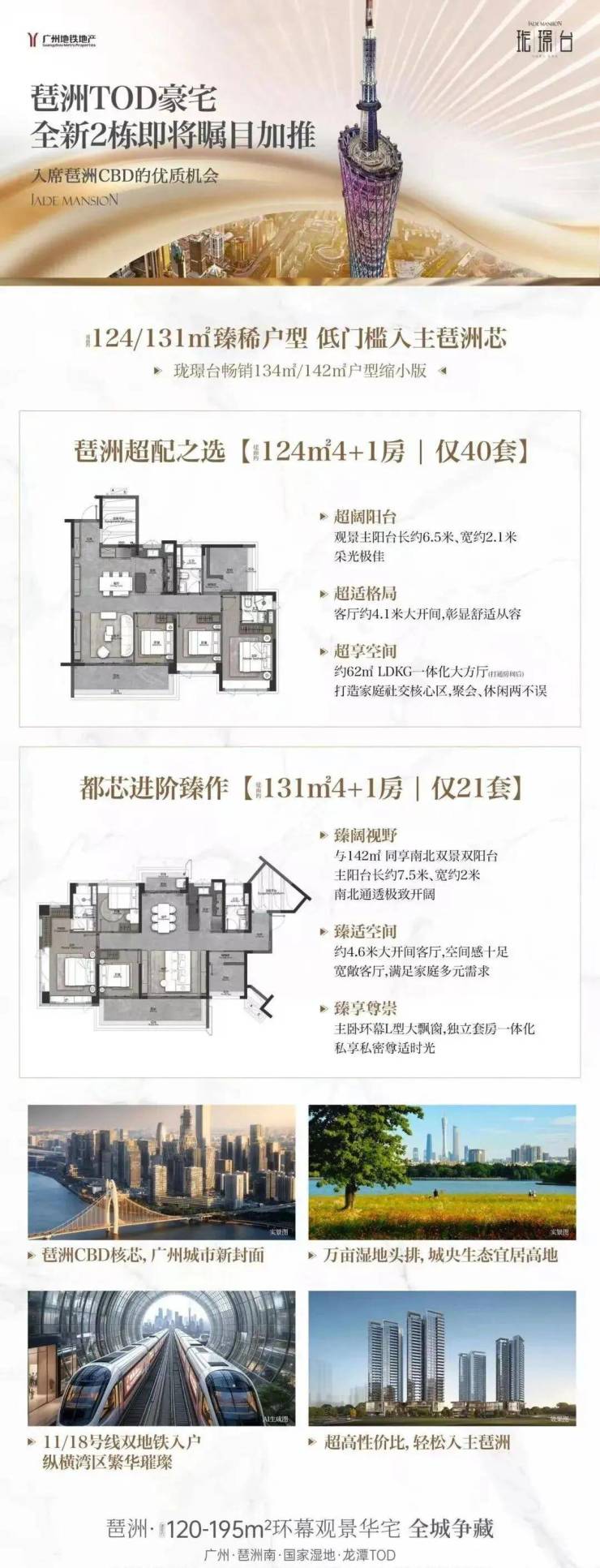 广州地铁地产·珑璟台推出最后一栋2#,主打建面约123㎡、131㎡4+1房。