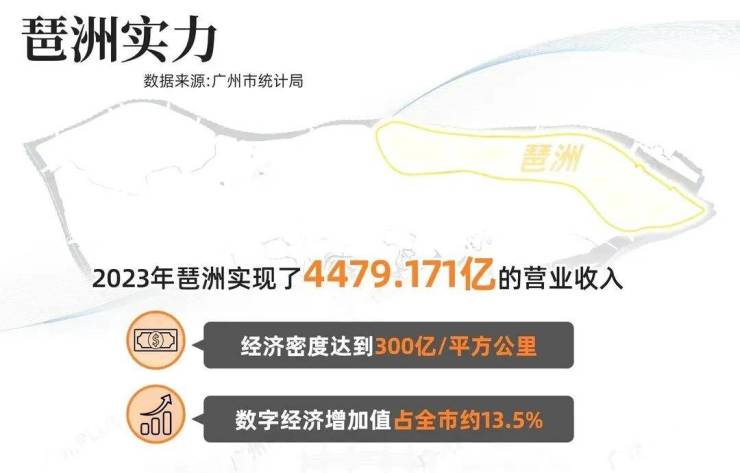 仅2023年,琶洲就实现了4479.171亿的营业收入,折算下来,经济密度达到300亿/平方公里!琶洲的数字经济增加值更占全市的13.5%,广州GDP突破3万亿大关,琶洲功不可没。