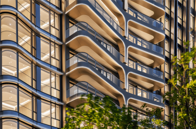 建筑立面设计灵感源于项目LOGO中的家族树,每一道线条皆象征家族根系深扎、,枝繁叶茂,契合中国人“家业传承”的美好愿景。