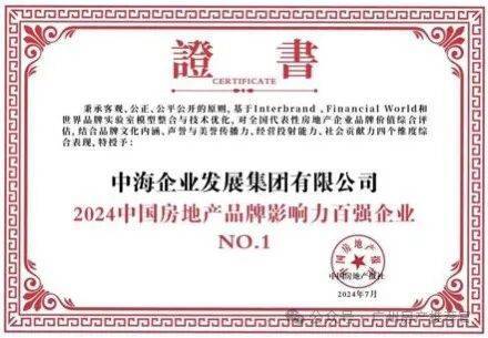 地段优越也需要产品本身耐打:大围合、全一线、超尺度、纯豪宅。大围合的布局,超尺度的楼间距(东西楼间距最宽超过200米,南北间距最大达到约100米);以及小区每一栋都是一线的位置,一线的景观,整体综合价值显著,被中指认证授予“2024城市典型样本项目”。中海地产作为背后的房企,也被评为“2024中国房地产企业品牌价值百强企业第一名”。