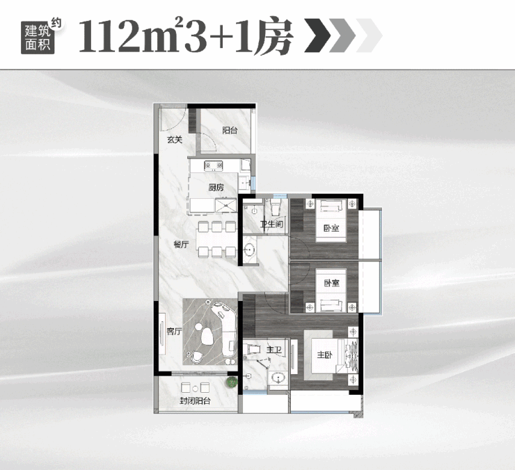 112㎡ 3+1房,LDKB一体化,空间灵活;