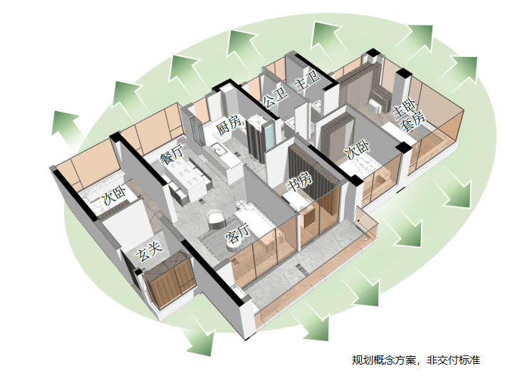 🔸景观舱主卧小家化:阳光衣帽间、360°环幕景观