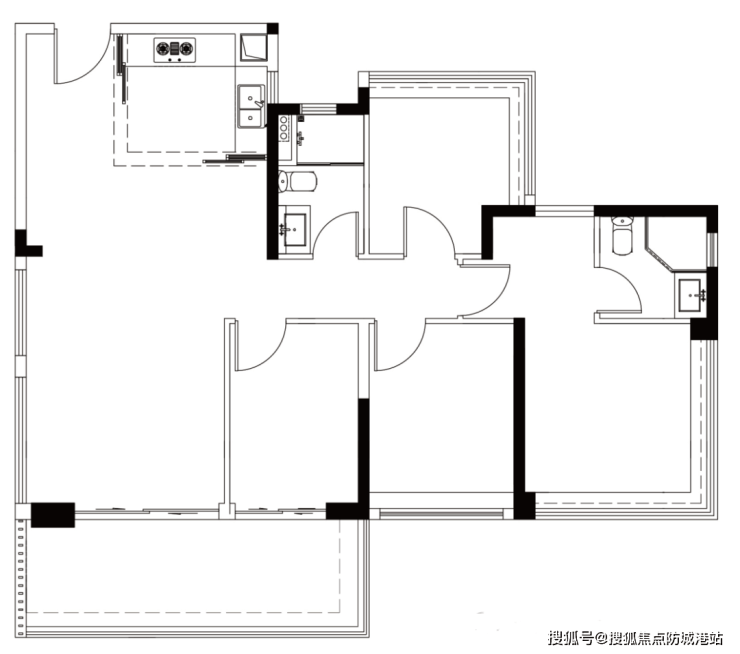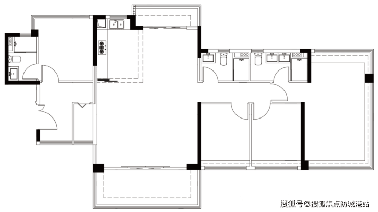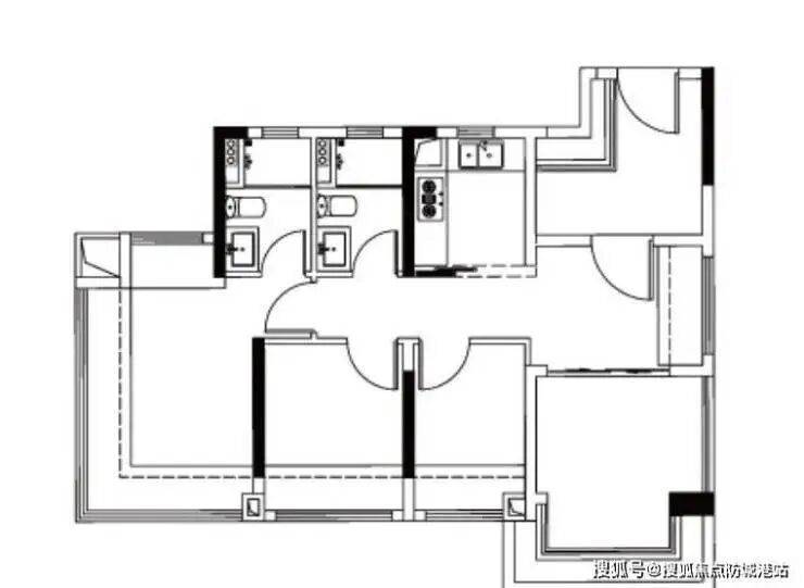 约104㎡ 4空间2卫:层高3.3米,6.1米大阳台,四开间朝南。