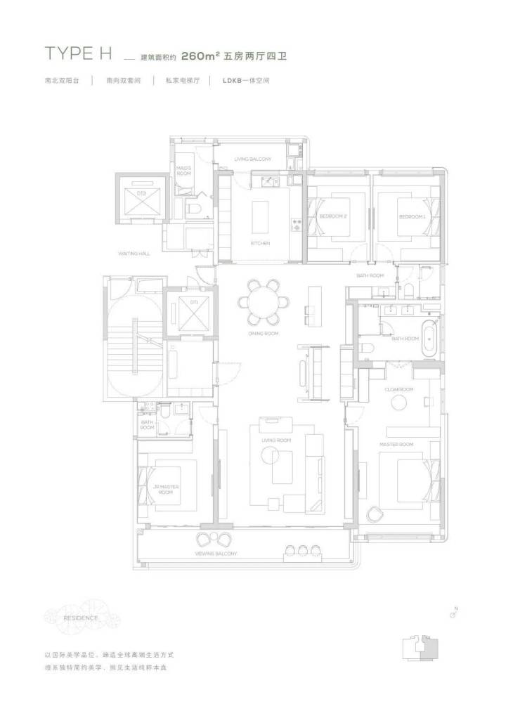 【260㎡户型】南北双阳台-南向双套间-私家电梯厅-LDKB一体化