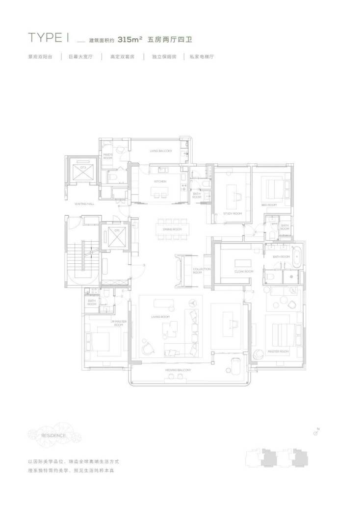 【315㎡户型】南北双阳台-独立保姆房-巨幕大宽厅-私家电梯厅