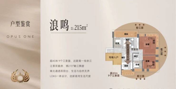 产品创新:项目主力户型为131-290㎡三至五房,采用“点阵式错位布局”,楼间距高达120米。以215㎡户型为例,层高3.3米,全景落地窗设计,搭配“双主卧+双会客厅”格局,满足家族多代共居的私密性与尊贵感。