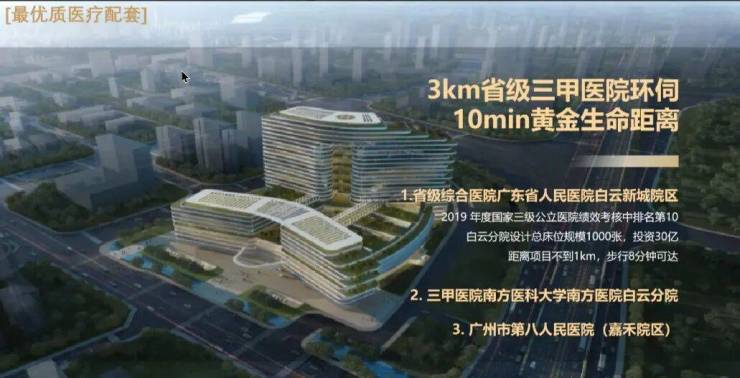 3公里,三甲医院环伺,广东省人民医院(白云新城院区)、南方医科大学南方医院、第八人民医院(嘉禾院区)等三甲医院