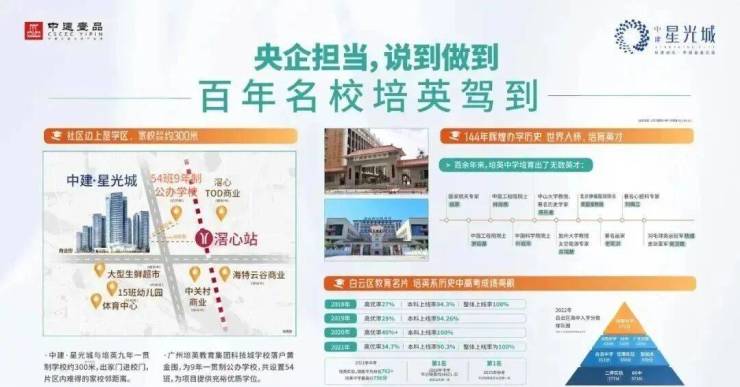 中建星光城对面54班9年一贯制公办中小学广州市培英中学(科技城校区)已建成,由中建集团鼎力助学,政企学三方携手聚力!