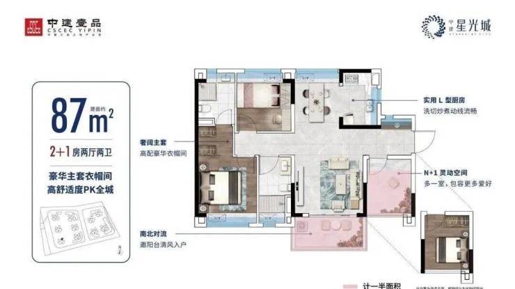 建面约87㎡丨南北通透主套大3房