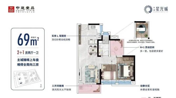 建面约69㎡丨主城区臻稀南向三房