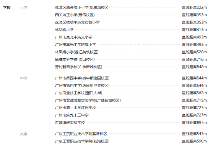 周边学校(项目对口入读西关培正芳信校区,初中摇号):