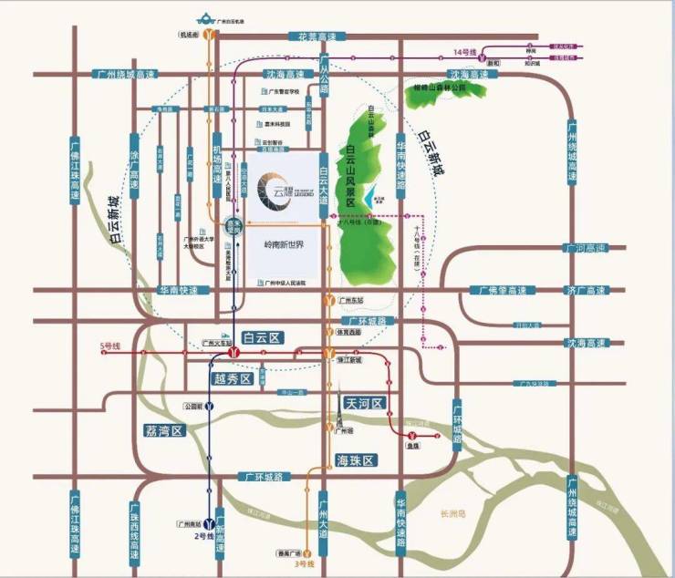 2、2号线直达广州火车站、广州南站、3号线5站即达白云国际机场、14号线连通白云及从化,未来更可直达清远、中山、珠海等地。