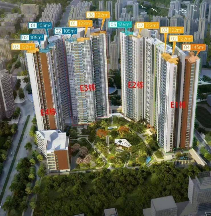 在售户型:105-143㎡住宅