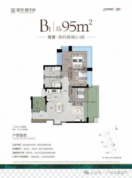 另一方面,空间尺度大大提升,建面约85~125㎡三房至四房,使用率达到约100%,比板块二手普遍高出20%!
