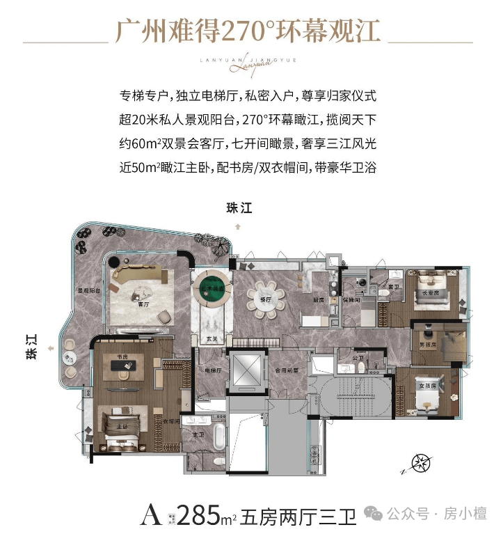 【产品面积】:约193㎡/285㎡瞰江艺术大宅