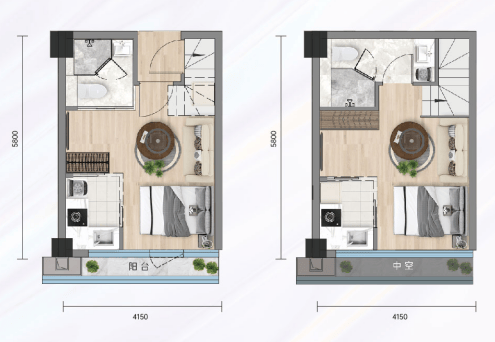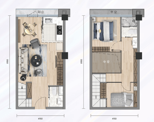 创新设计:中空设计,室内居住空间感强