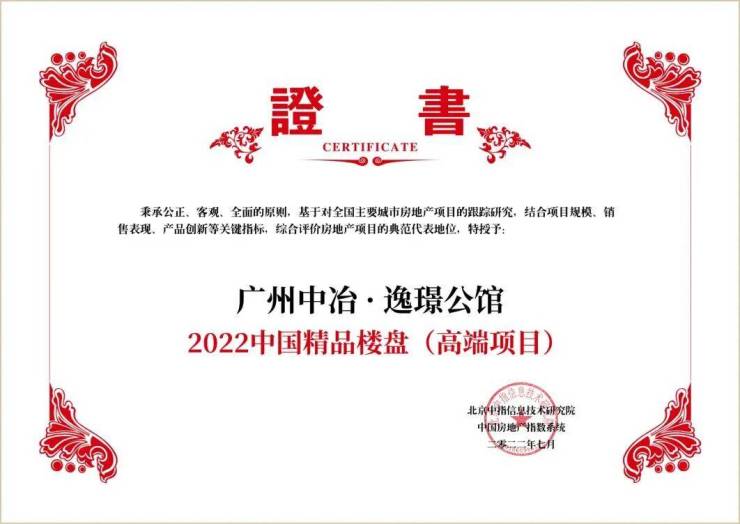 中冶·逸璟公馆从拿地到开发,出生便载誉而来,其所在的地块是当年海珠的楼面最高价,开盘后刷新区域一手豪宅的售价,同时荣膺“2022中国精品楼盘TOP1(高端项目)”。项目仅有48套,并且是广州目前仅有的一手城芯院墅。