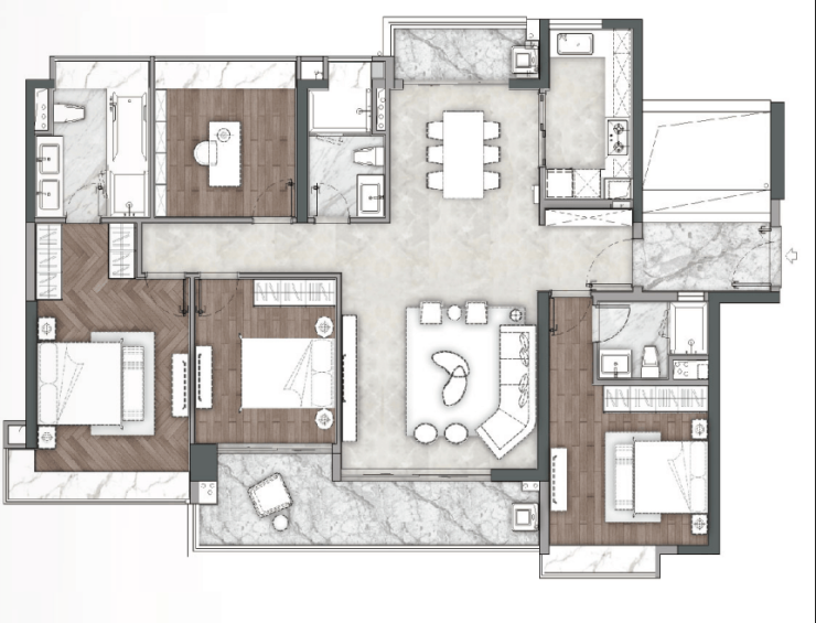 项目以岭南新中式主题园林引入云山意境,A组团设计“两环十二景”园林,提供全龄化邻里社交活动空间。项目内还有边际度假泳池,在小区内就可以游泳了,也有专为儿童设计的亲子活动天地;以及400米氧气跑道,可以在小区内休闲娱乐。