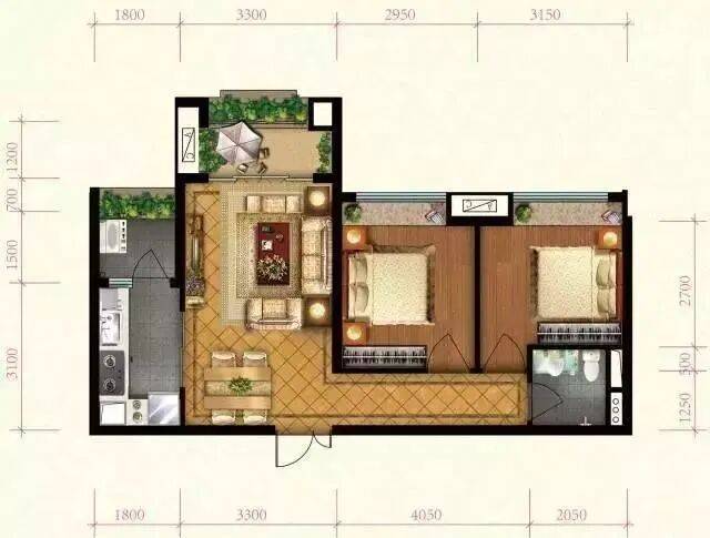 :两房两厅一卫,直出阳台可观芙蓉嶂山湖美景 。双阳台设计实现动静分区,既保证生活起居的私密性,又能在闲暇时欣赏窗外山湖风光 。