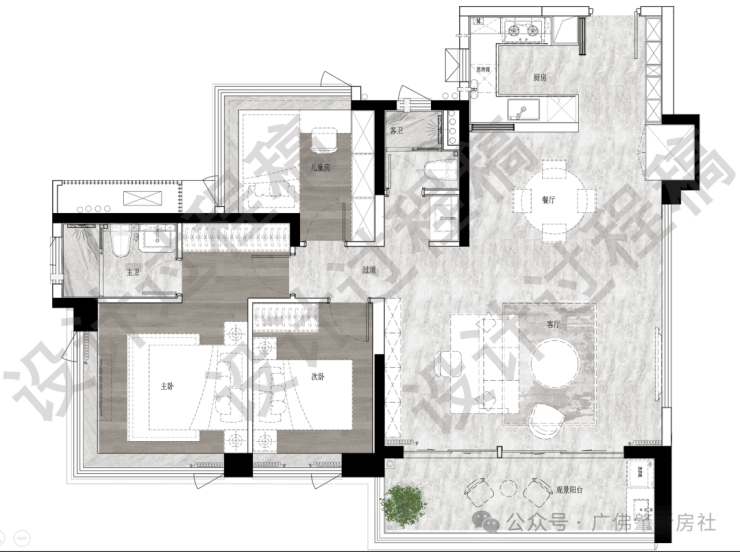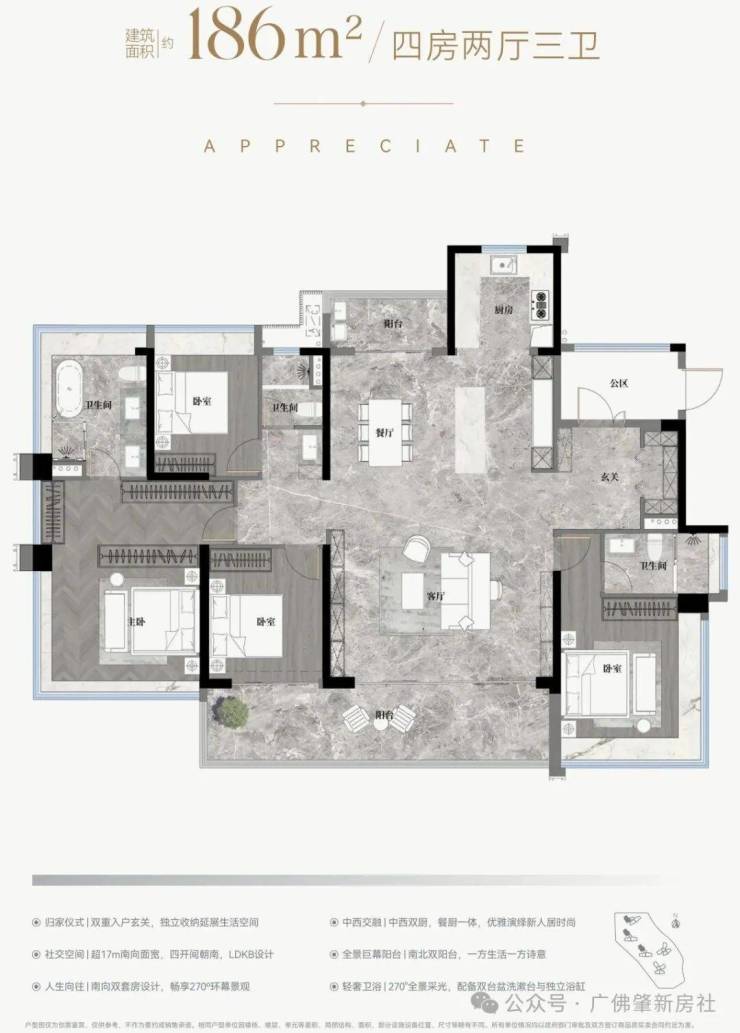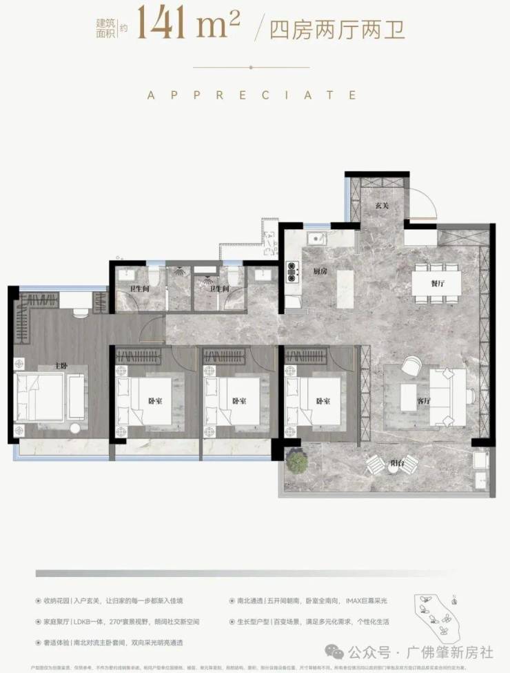 ✅5.9m开间巨幕客厅,主卧270°全景飘窗