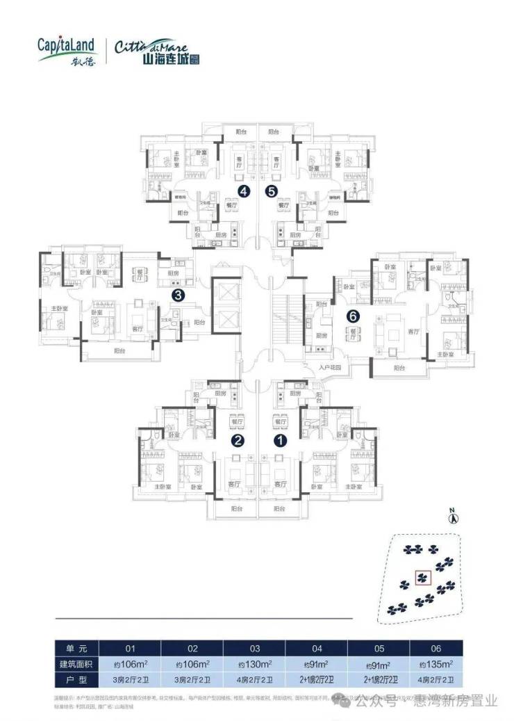 项目一共有5个面积段,分别是85平三房两厅一卫,91/106平三房两厅两卫,130平A户型五房两厅两卫,130平B和135平户型四房两厅两卫。