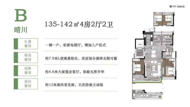 琶洲南超一线湖滨水景,2.83的低密追求,户户朝南的板式楼设计,7-14米开间的奢阔阳台,成就保利在琶洲的又一经典。