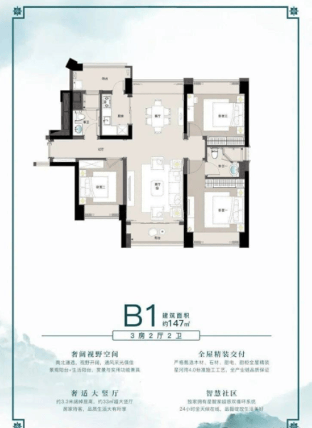 既能满足多孩家庭居住,也能预留书房、茶室等功能区,部分毛坯户型单价2.8-3万/㎡。