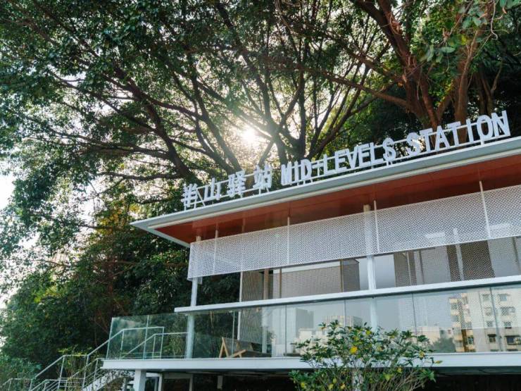 譬如半山驿站,镶嵌在狮山公园的白色玻璃盒子,与滨水河岸呼应;