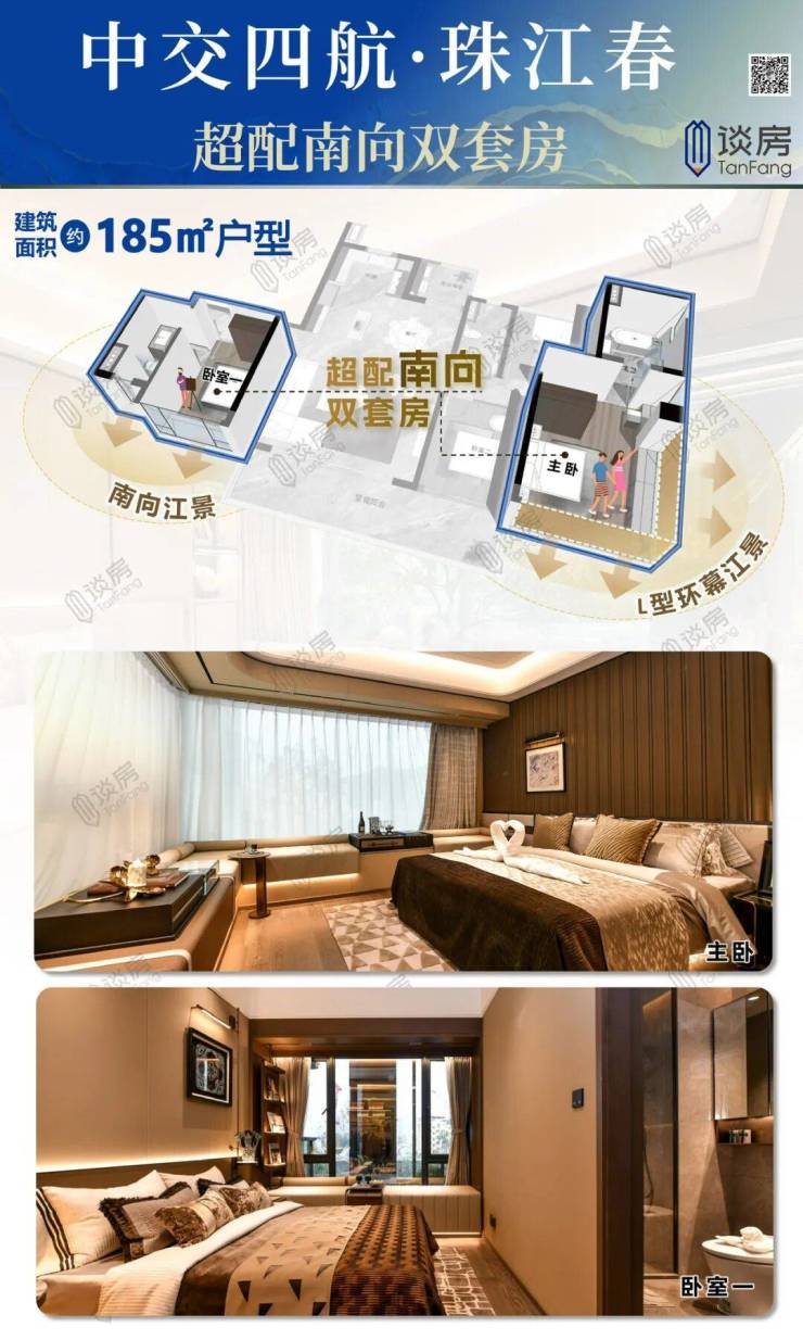 而珠江春为总南向面宽约15-18米,南向4-6开间,真正做到“不因房间数压缩面宽”。