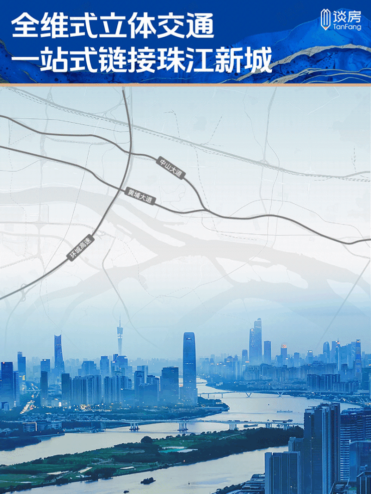 珠江春所在的鱼珠港CBD,就在黄金十字轴之上,坐拥全维立体交通,一站式联通金融城、珠江新城、琶洲CBD黄金三角。