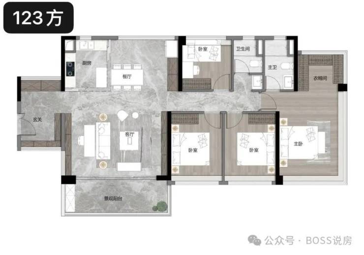 项目的二期优先开发最南端的四栋,首开2栋小高层和2栋高层,同时保留一期超高120%的使用率,全南向布局,小高层3.3米层高和双主套设计。