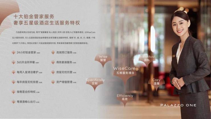 项目基于WiseCare服务体系原则,以智慧·隐私·定制·高效·温馨为服务理念,营造了涵盖“十大铂金管家服务”、“掬粤会艺术会所服务”、“高奢定制服务”三大服务模块,致力于让客户享受多元化、多样性、全周期的尊享服务体验。