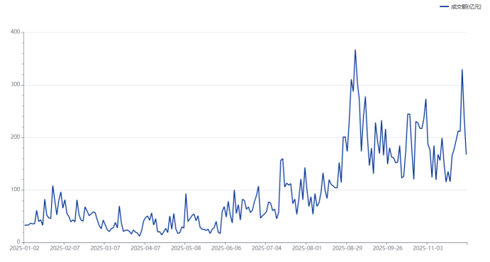 注:中际旭创年内成交额变动情况(截至11月28日收盘)