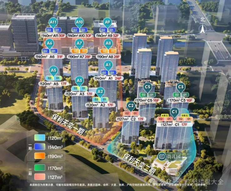 【在售面积】一期 120-140-190㎡、二期127-170㎡