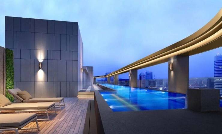 立面·新地标:参考游轮风格打造的外立面,玫瑰金点缀铝板装饰,采用气密性、水密性、隔音隔热方面有更高性能的系统,同时窗户之间采用内嵌进墙体的技术,让每个房间都达到最安静的效果。