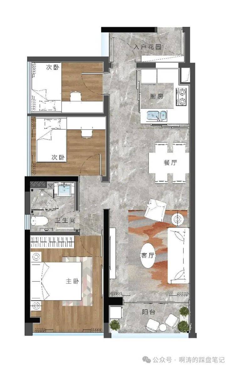 83-84㎡南向三房两厅一卫(带入户花园)