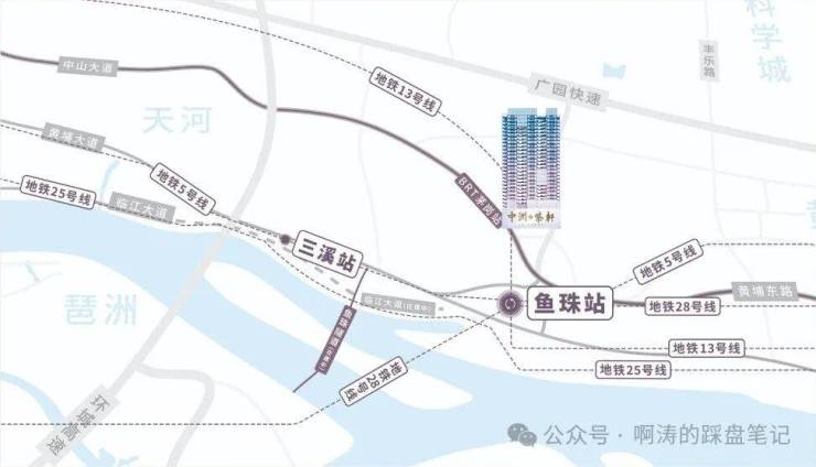 5 分钟直达天河、黄埔、海珠商圈,享美林天地、山姆会员店等商业体;教育覆盖鱼珠小学等校及多所优质中学;三甲医院等医疗资源护航健康;距江仅 900 米,蟹山公园等生态公园环绕。