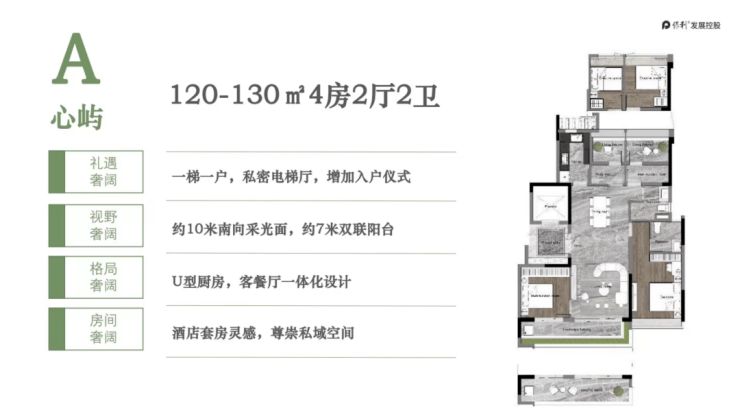 开放的阳台及大露台,为户内带来更多对流。客厅朝南二开间全落地窗,为户内带来充分的自然光线和景观,在平面上拉近了自然环境与人居空间的联系。